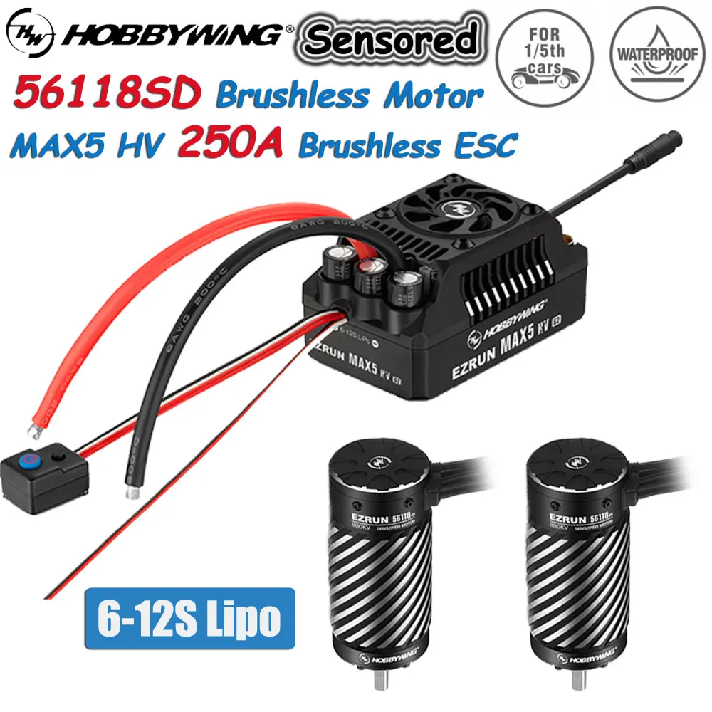 Hobbywing 1/5 RC Car Buggy Monster Truck 56118SD 650KV 800KV 1100KV Motor MAX5 250A G2 ESC 6-12S Waterproof Sensored Brushless