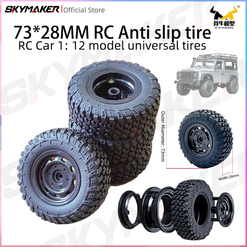 MN 4PCS 73*28MM Rc Car Anti-skid Grip Wheel Rim for Rc 1/12 MN99S MN128 MN98 MN168 Assembled Tyre Off-road Truck Upgrade Parts