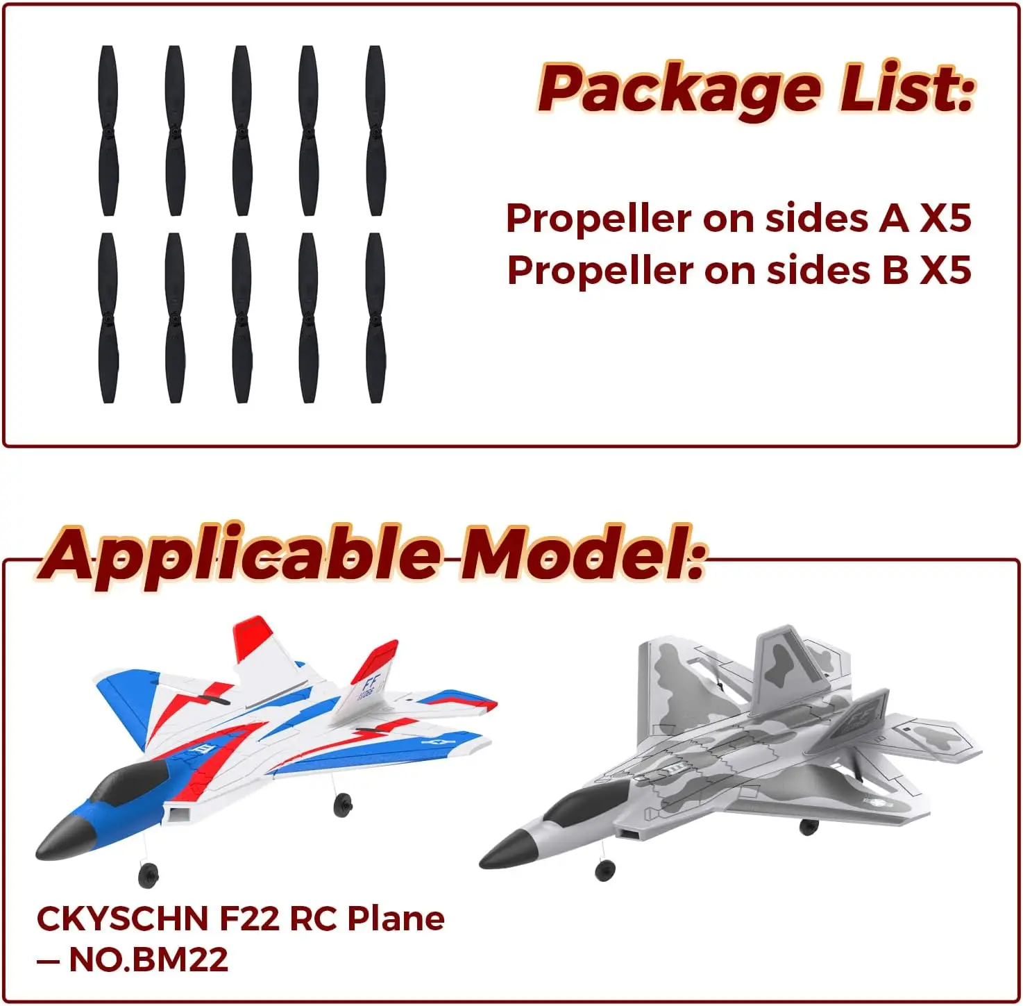 10 Pcs Spare RC Plane Propellers Compatible with BM22 F22 Fighter RC Plane, RC Airplane Glider Aircraft Accessories Sets