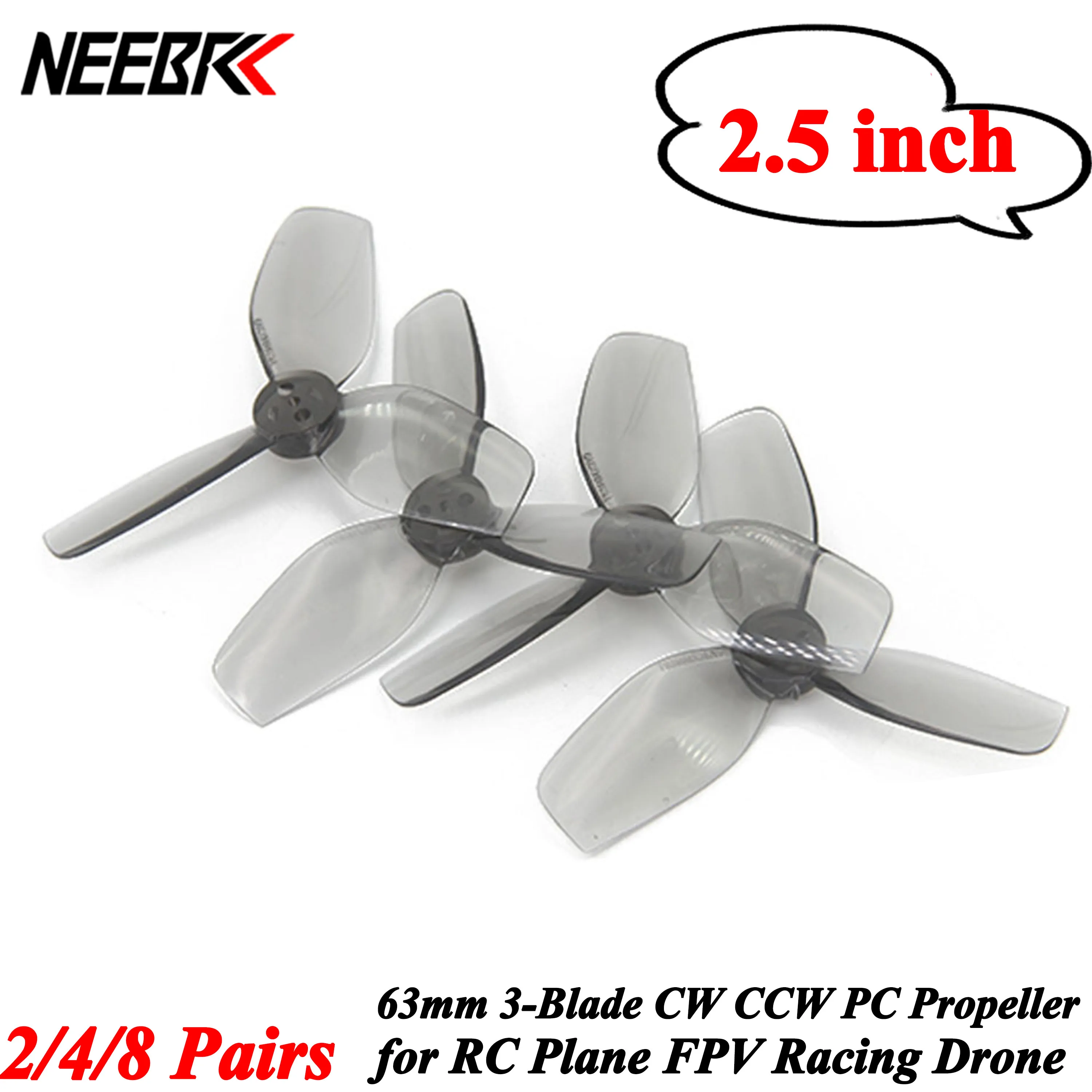 NEEBRC 2/4/8 Pairs 2.5inch 63mm 2CW 2CCW 3-Blade PC Propellers for FPV Racing Drone RC Plane Airplane DIY Model Toy Parts  Read more