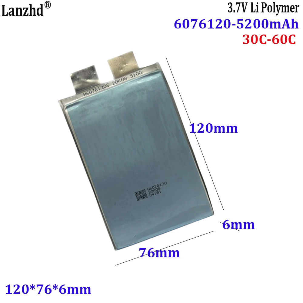 3.7V High-rate battery 30C Cell For Jump Starter Drone Battery Electrical Tool Dr Emergency Power Supply etc 6076120 5200mAh