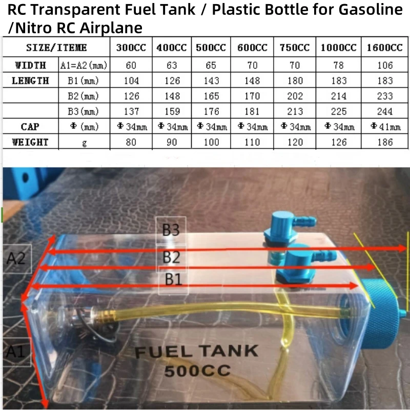 RC Transparent Oil/Gas Fuel Tank / Plastic Bottle 300/400/500/600 ml/cc for Gasoline and Nitro RC Model Airplane  Read more