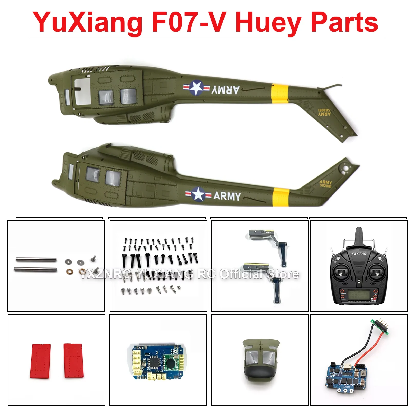 YXZNRC YUXIANG F07V 3D Version UH-1D HUEY RC Helicopter Parts Main Blade Tail Rotor Swashplate Servo Fuselage Accessories