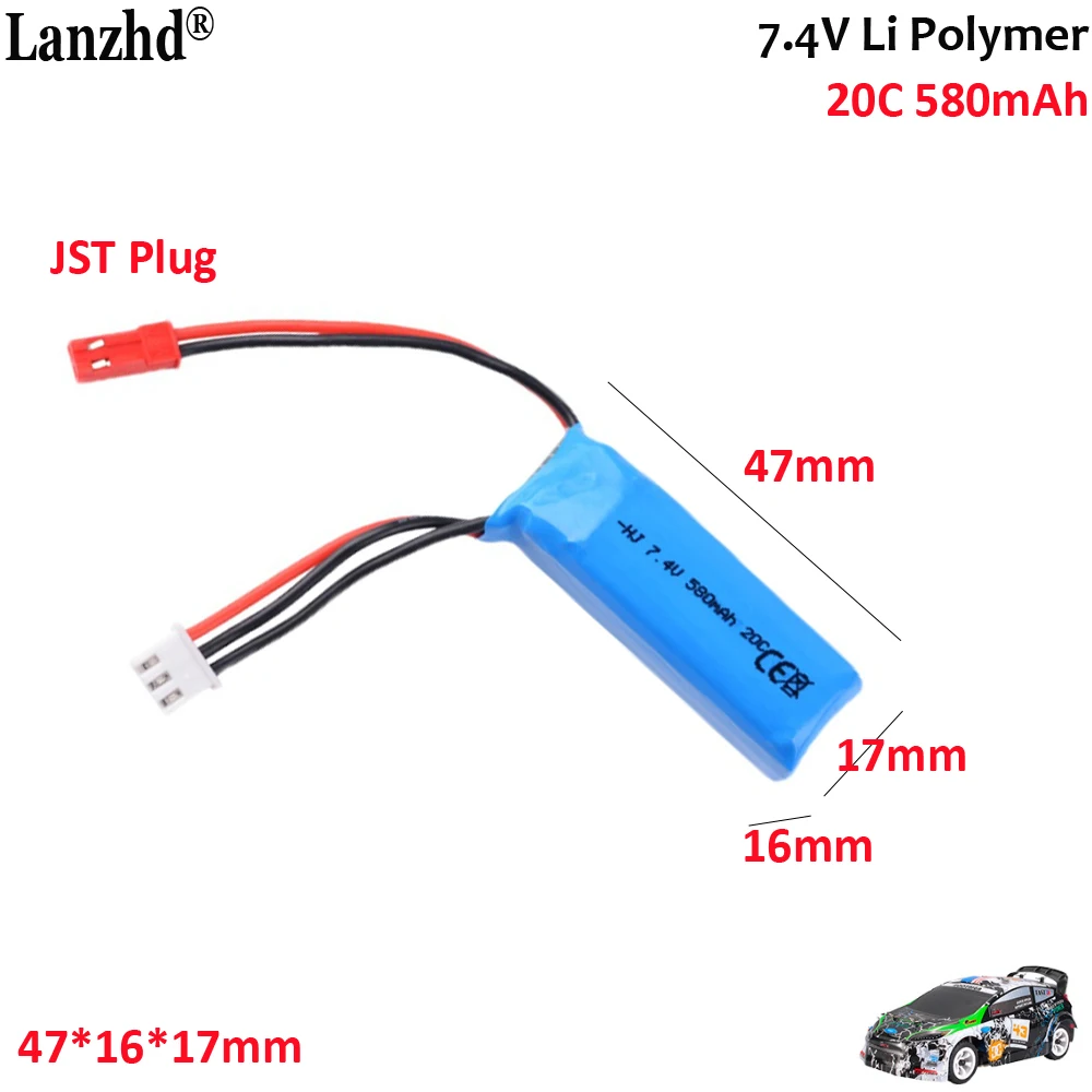 7.4V 580mAh lithium battery 20C For Mini-Q mosquito car Weili K989 1:28 toy car remote control car RC Toy