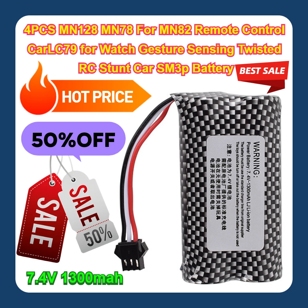 7.4V 1300mah 4PCS MN128 MN78 For MN82 Remote Control CarLC79 for Watch Gesture Sensing Twisted RC Stunt Car SM3p Battery  Read more