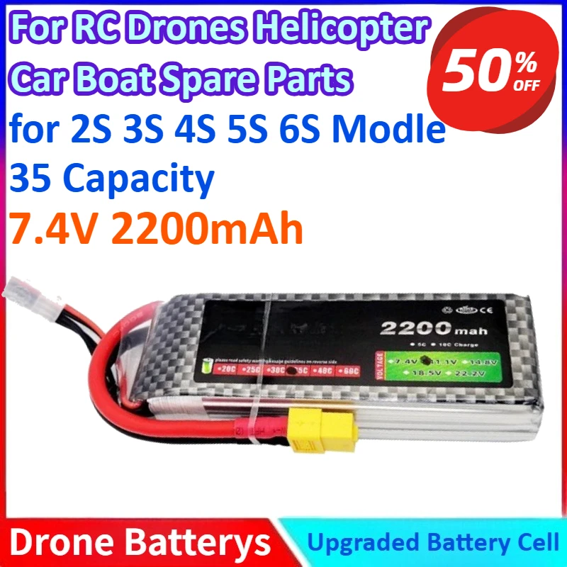 7.4V 2200mAh 2S 3S 4S 5S 6S Modle 35 Capacity New General-purpose LiPo Battery for RC Drones Helicopter Car Boat Spare Parts