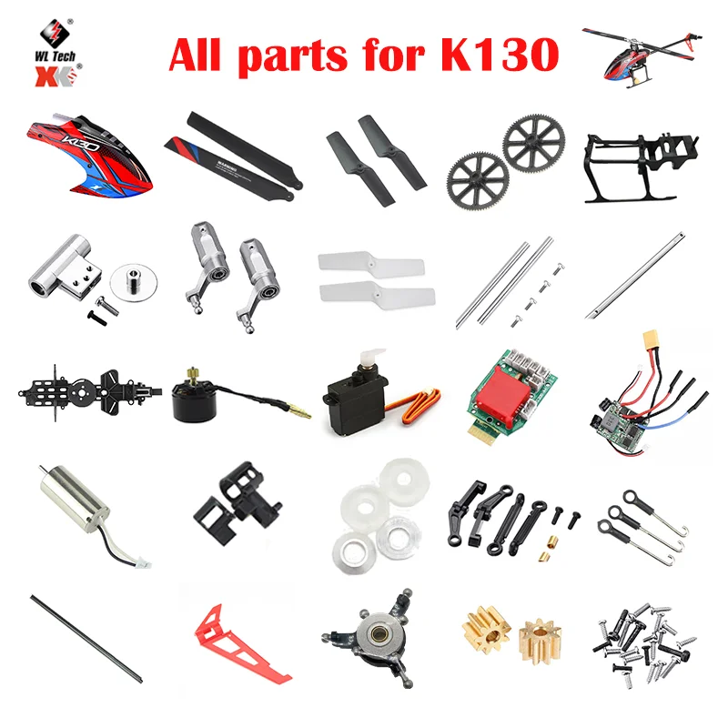 Wltoys K130 RC Helicopter Accessories Gear Metal Conversion Blade ESC Tail Motor Rotor Head Canopy Servo For K130 Upgraded Parts