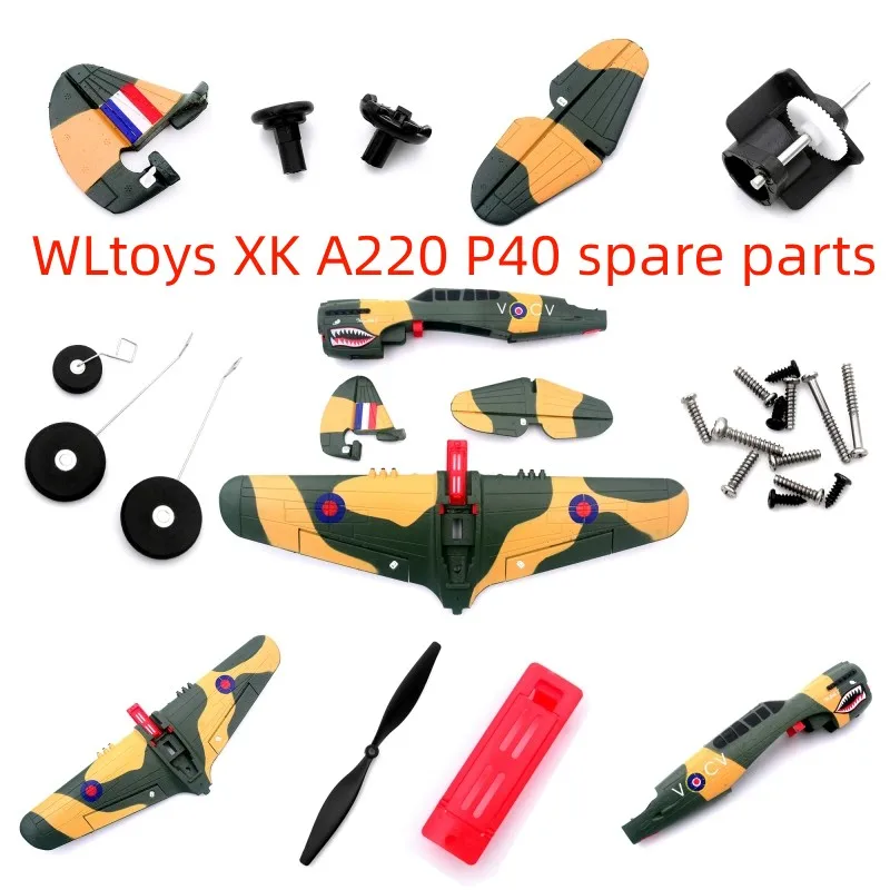 WLtoys XK A220 P40 RC Glider Parts Propeller Motor Receiver Plate Remote Control Body Gear Landing Gear Servo Blade Clip Tie Rod