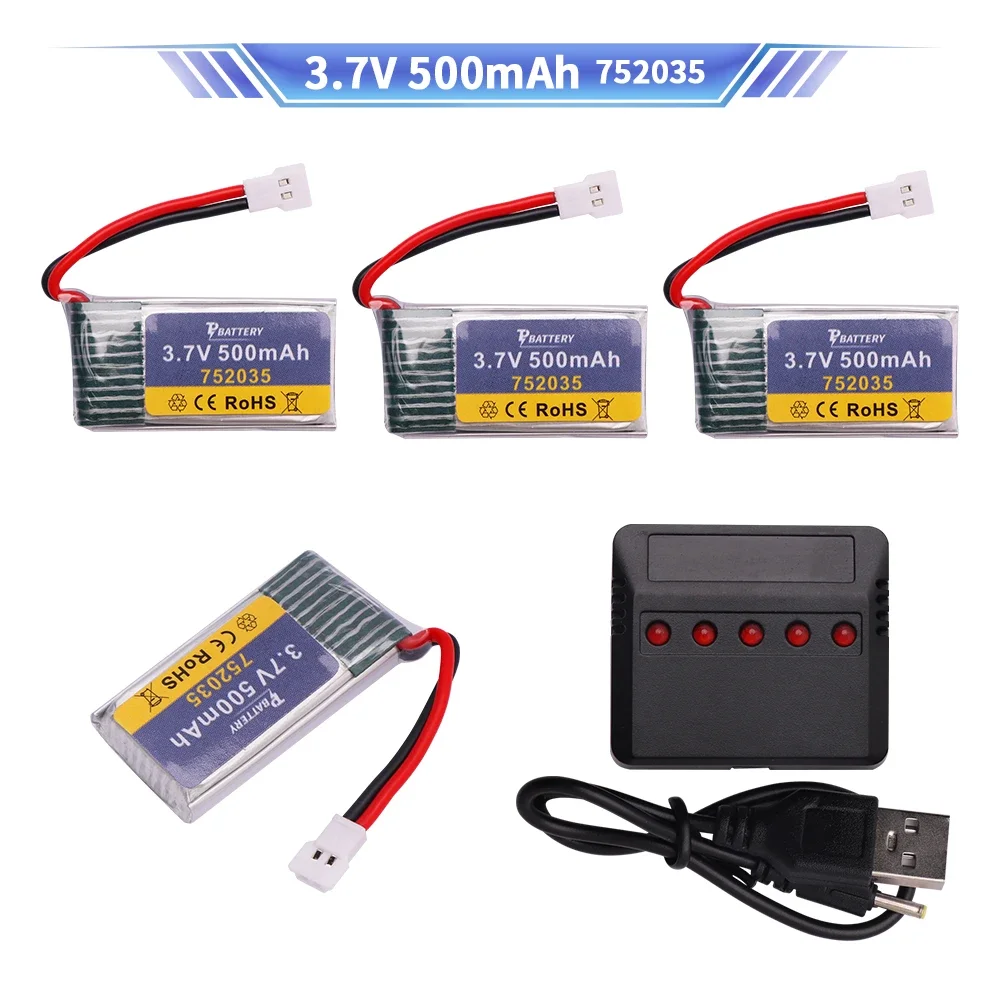 3.7V 1S 500mAh 752035 Lipo Battery with Charger For H107 H31 KY101 E33C E33 RC Drone Helicopter Spare Parts 3.7V Battery XH2.54