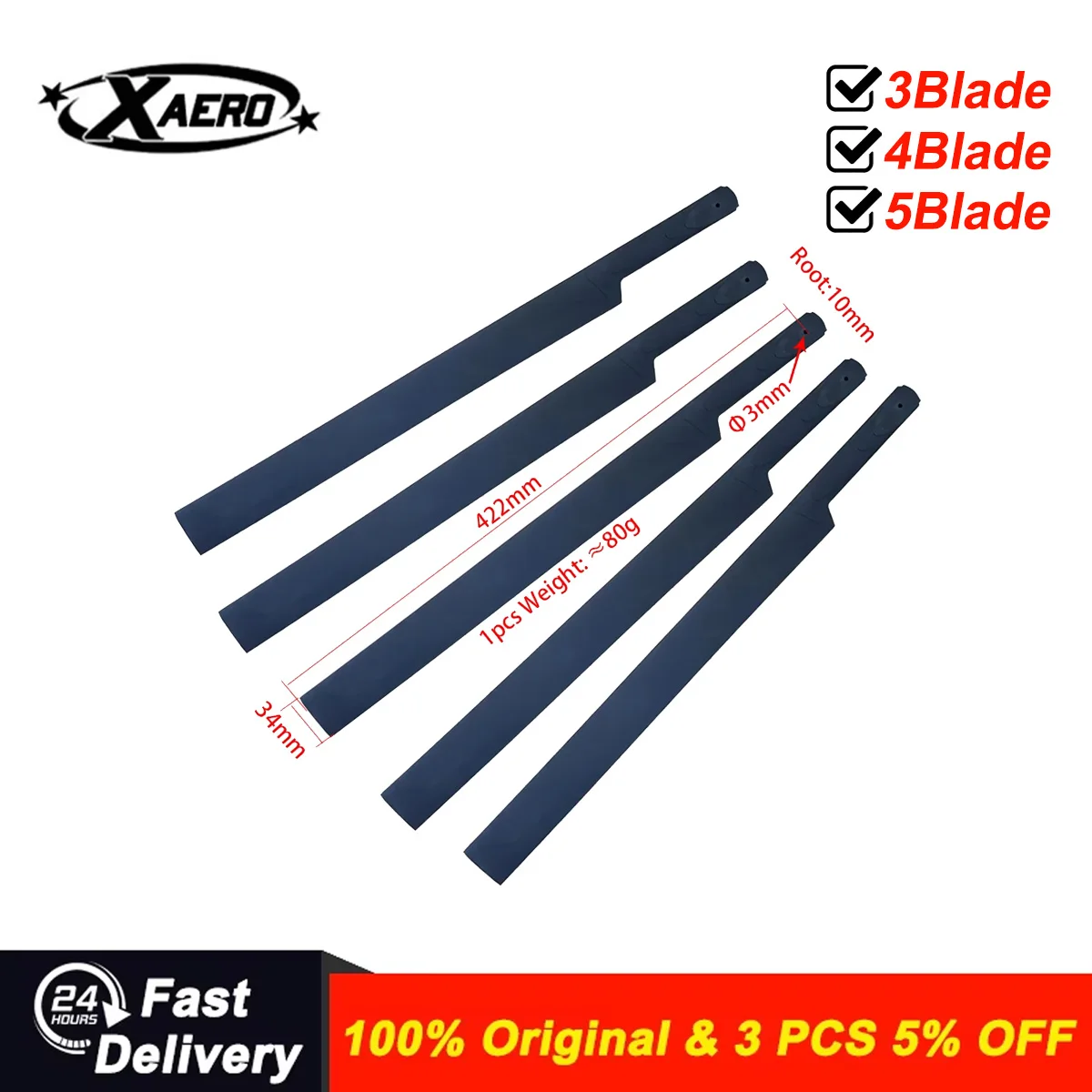 JDHMBD 500 3-Blade 4-Blade 5-Blade Main Rotor Head Assembly Scale RC Helicopter Propeller Blades for Align T-REX 500 Parts