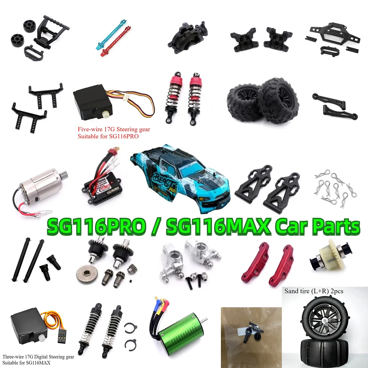 SG116PRO / SG116MAX RC Original Car Spare Parts ESC Shell Drive Shaft Tire Differential Gear Swing Arm Bumper Chassis Receiver