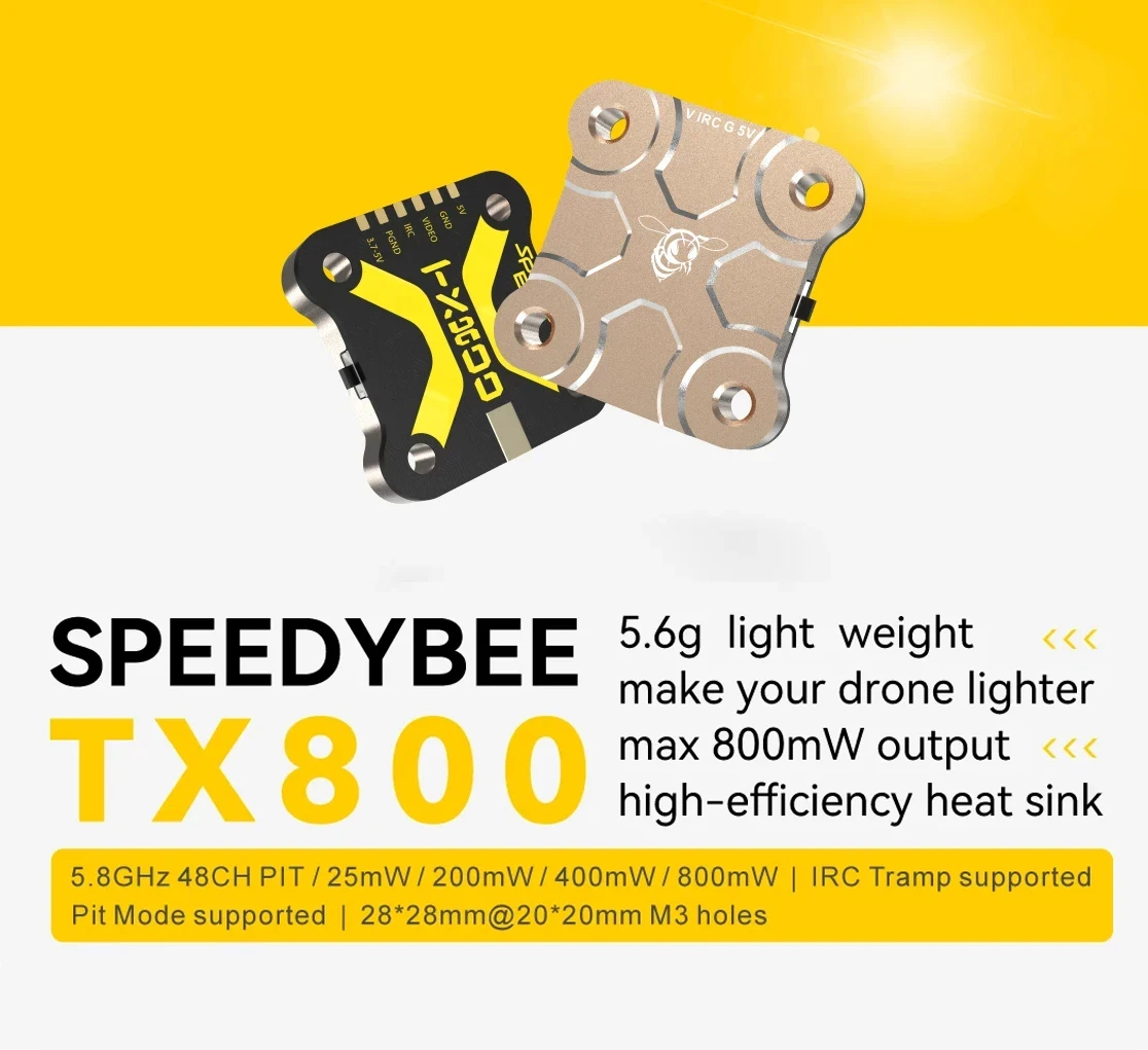 SpeedyBee TX800 VTX 5.8G 48CH PitMode 25mW/200mW/400mW/800mW Output Transmitter Tramp Support For RC FPV Long Range Racing Drone  Read more