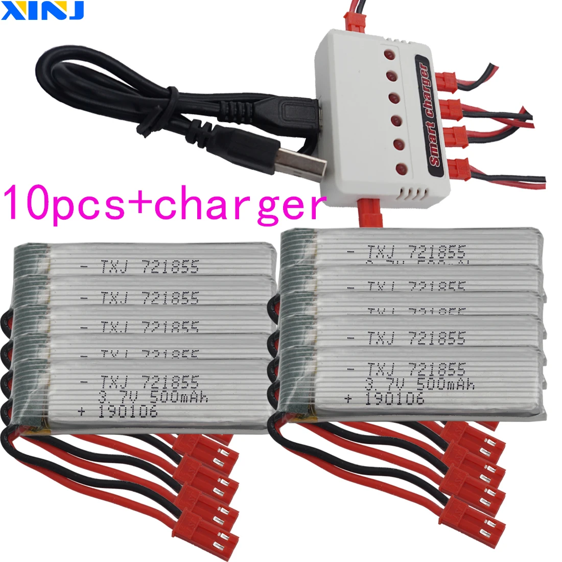 Charger+10pcs 3.7V 500mAh 25C Li Lithium Battery 721855 JST Connector For FLT H07 U815A U818A U819A LS 6036 RC Quadcopter Drone