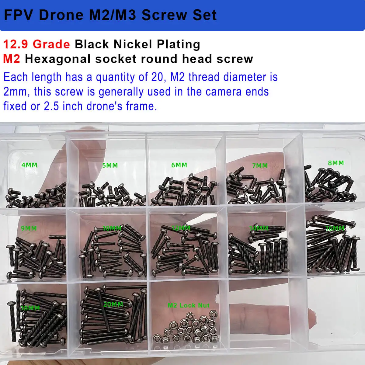 M2 M3 Screw Set 12.9 Grade Black Nickel Plating Socket Round Head Screws Kit For RC FPV Drone F4 F7 Flight Control Stack Frame