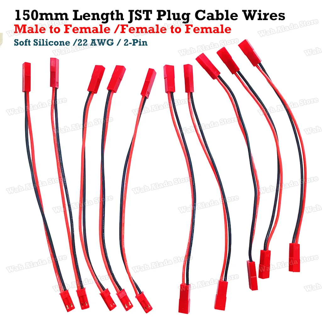 5Pcs RC 150mm JST Male Female Connector Plug Extension Wire Cable Harness for RC Model Car Aircraft JST 2-Pin Plug Harness Parts