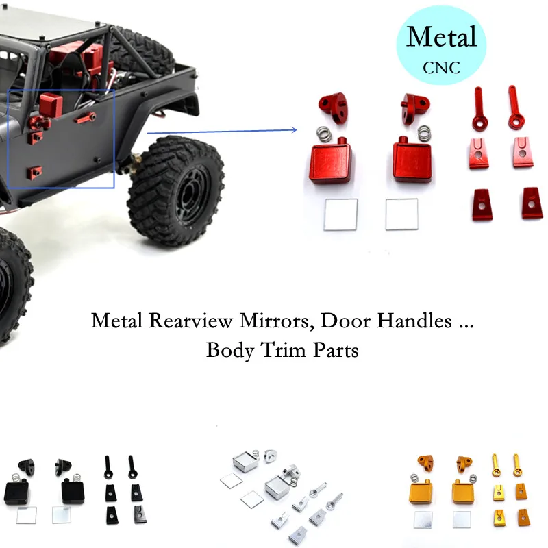 Metal Rearview Mirrors, Door Handles etc. for the Meijiaxin H12Y H12Y+ RC Car, Upgraded Aluminum Alloy Body Trim Parts