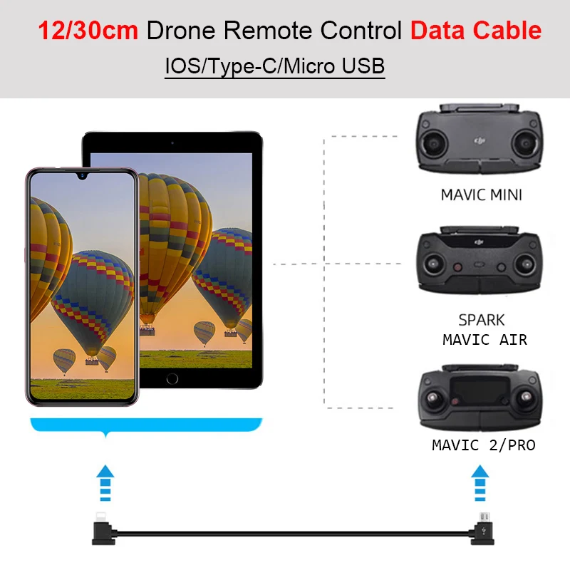 Drone Remote Control OTG Data Cable for DJI Mavic 2/Mini/Pro/Air/Spark/Mini SE RC to Phone Tablet Micro USB Type-C IOS Connector