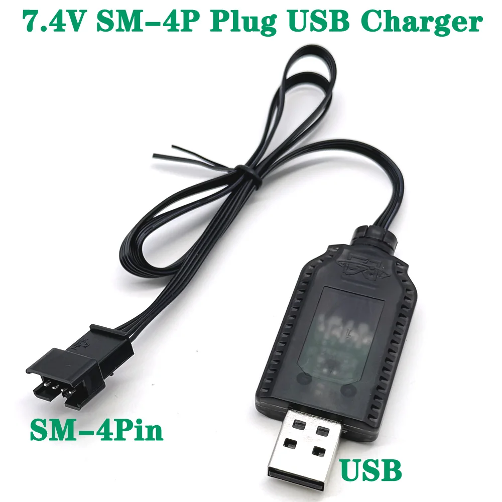 1Pc 7.4v (3.7v x2) Charger SM-4P Li-ion battery Electric RC Toys car boat USB Charge Cable