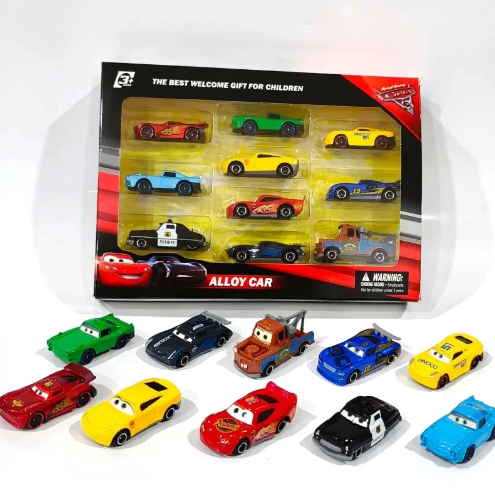 12pcs/Set Hot Sale Pixar Cars Lightning Mcqueen Jackson Storm Mater Pvc Model Back-Force Car Toy For Kids Birthday Gift Set