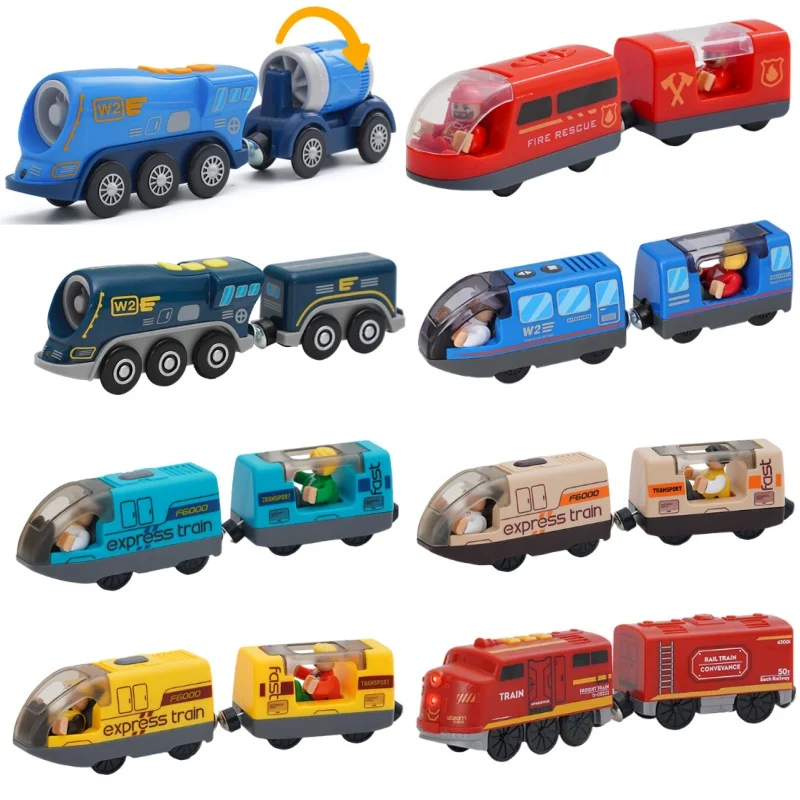 new Locomotive Electric Train Set Diecast Magnetic Locomotive Slot Toy Fit For Wooden Rail Track Toys Kids Gift