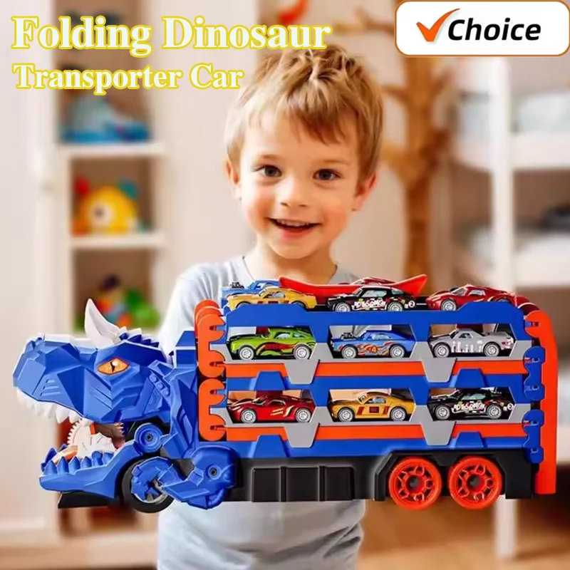 Dinosaur Transport Truck Toys With12 Molded Racing Cars, Transforming Dinosaur Car With Handle, Gift for Boys and Girls Aged 3-5
