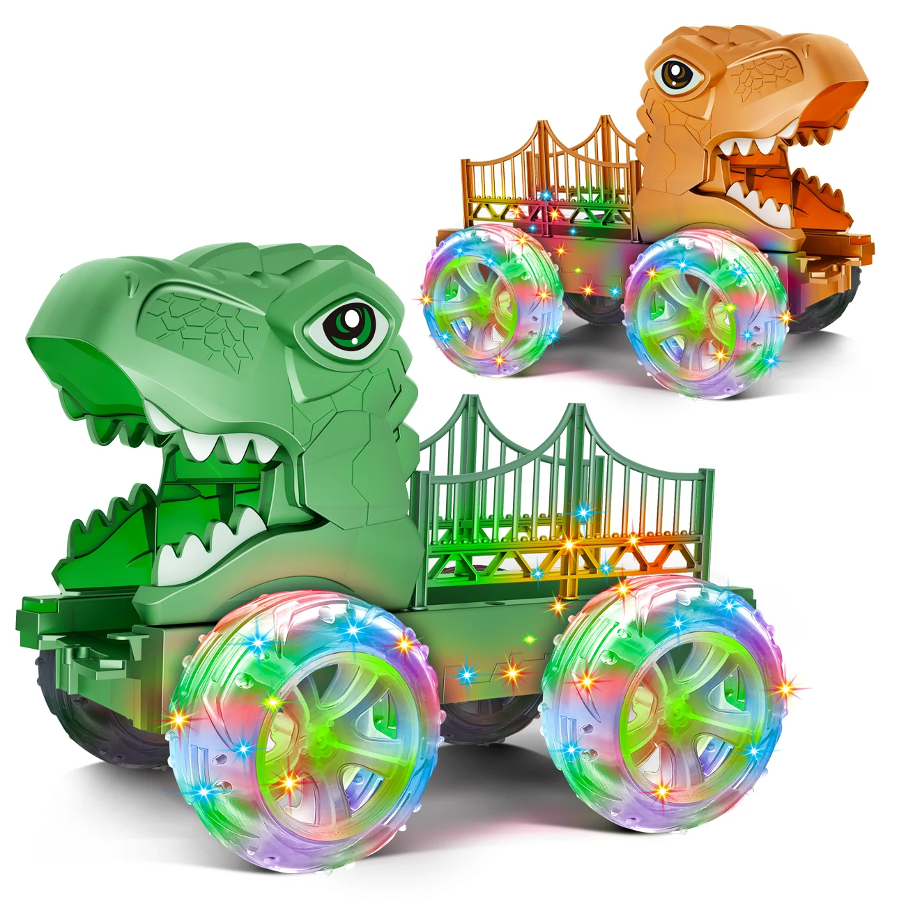 Dinosaur Truck LED Light Toy Set Flashing Lights Dino Transport Car Gift for Boys & Girls Aged 3-6 Years Old