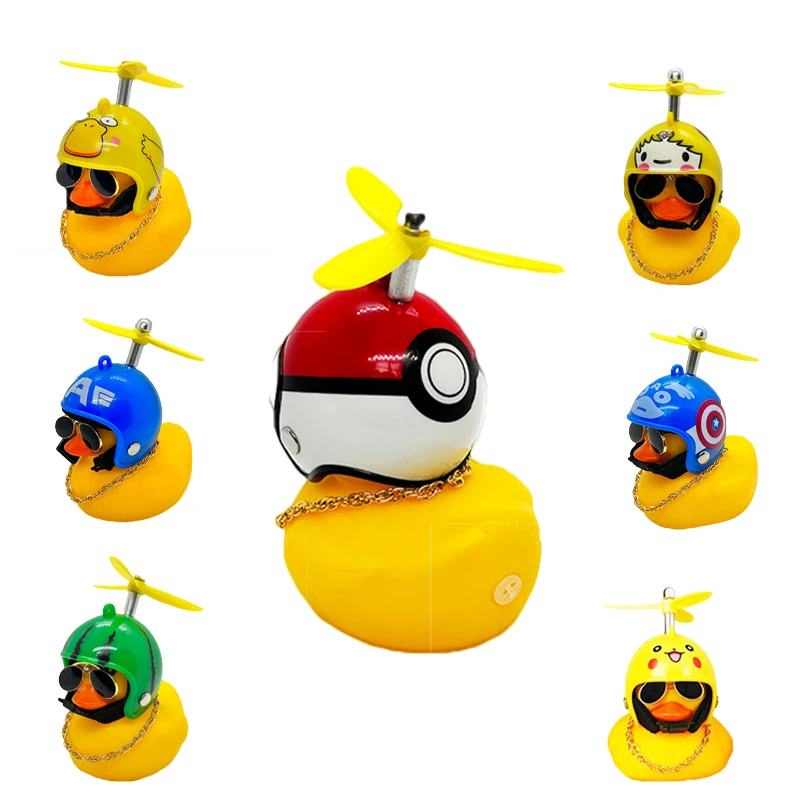 Motorcycle Accessories Cute Duck with Propeller Helmet Broken Wind Rubber Duck Toy Car Bicycle Small Yellow Duck Decor Ornaments