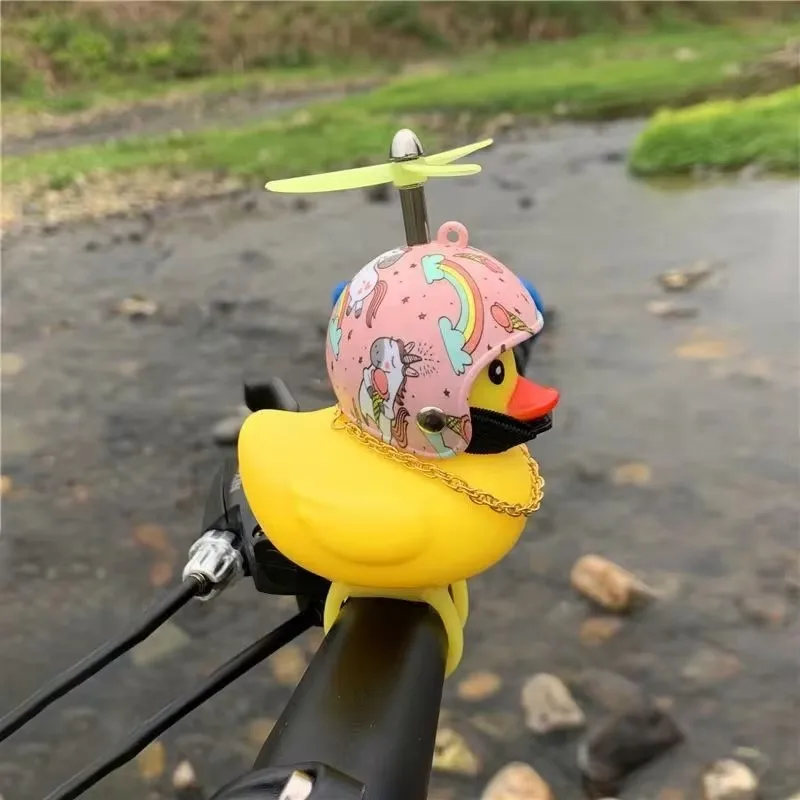 Motorcycle Car Cute Duck with Light Propeller Helmet Bike Rubber Duck Toy Auto Bicycle Bell Yellow Ducky Decor Ornaments