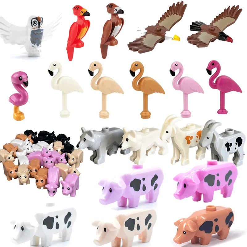 MOC City Animals Building Block Model Farm Ranch Scene Accessories Goat Wolf Pig Owl Flamingo Parrot Bird Zoo Kids Brick Toy T04  Read more