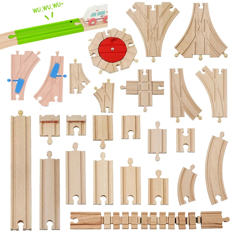 New All Kinds Wooden Track Parts Beech Wooden Railway Train Track Toy Accessories Fit for All Brands Wood Tracks Toys for Kids