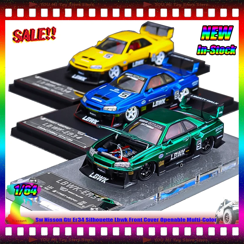 New Stock Sw 1:64 Nisson Gtr Er34 Silhouette Lbwk Front Cover Openable Multi-Color Alloy Miniature Diecast Model Collectible Toy  Read more
