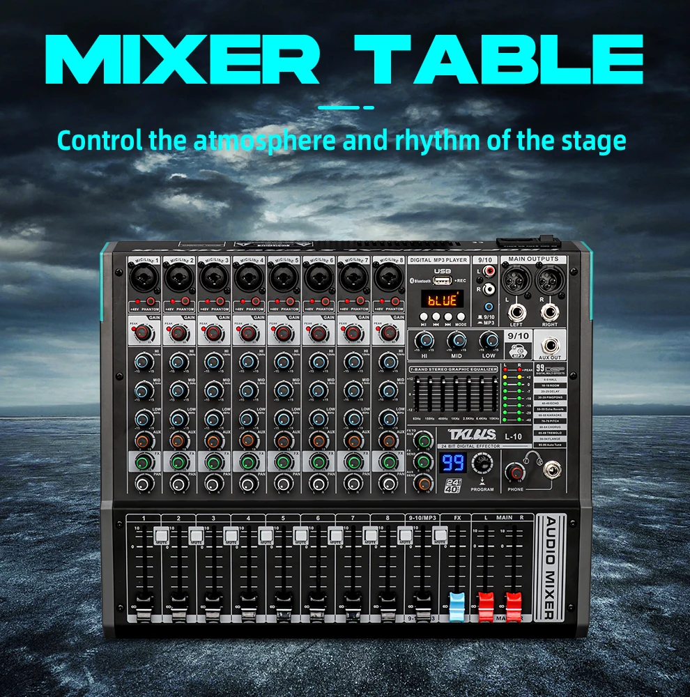 Professional TKLBLS L10 mixer 10 channel 99 DSP effect USB DJ mixer Bluetooth 48V party performance  Read more