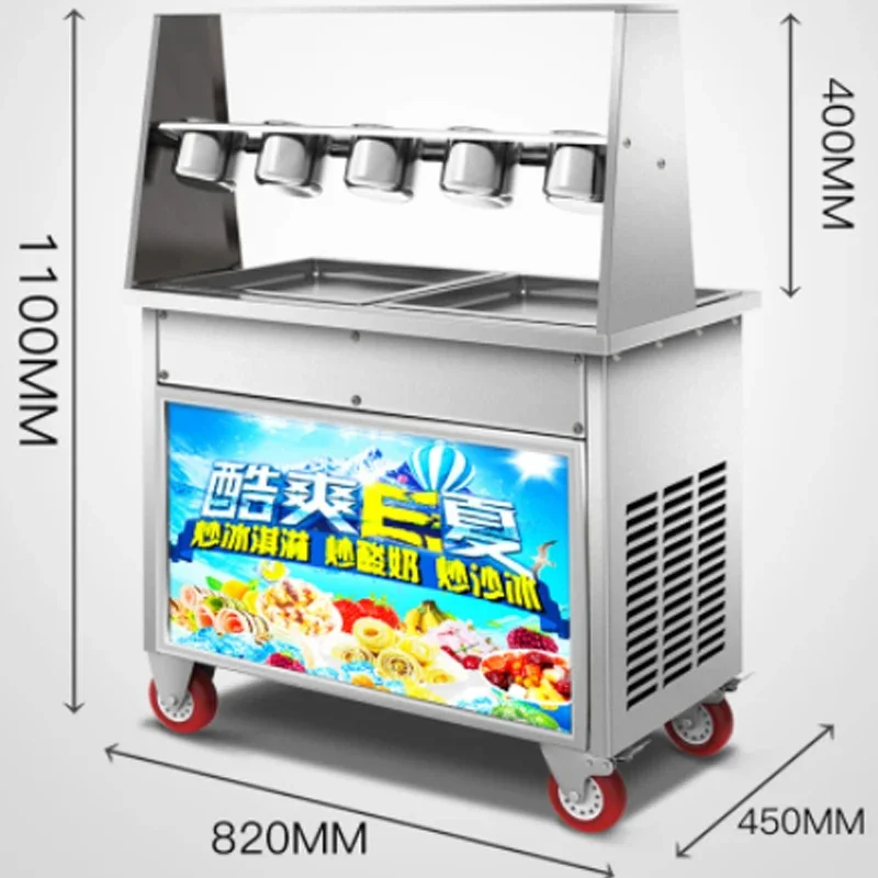 Automatic Double Square Flat Pan Instant Thailand Rolled Ice Cream Making Thai Stir Fry Tawa Roller Fried Ice Cream Roll Machine