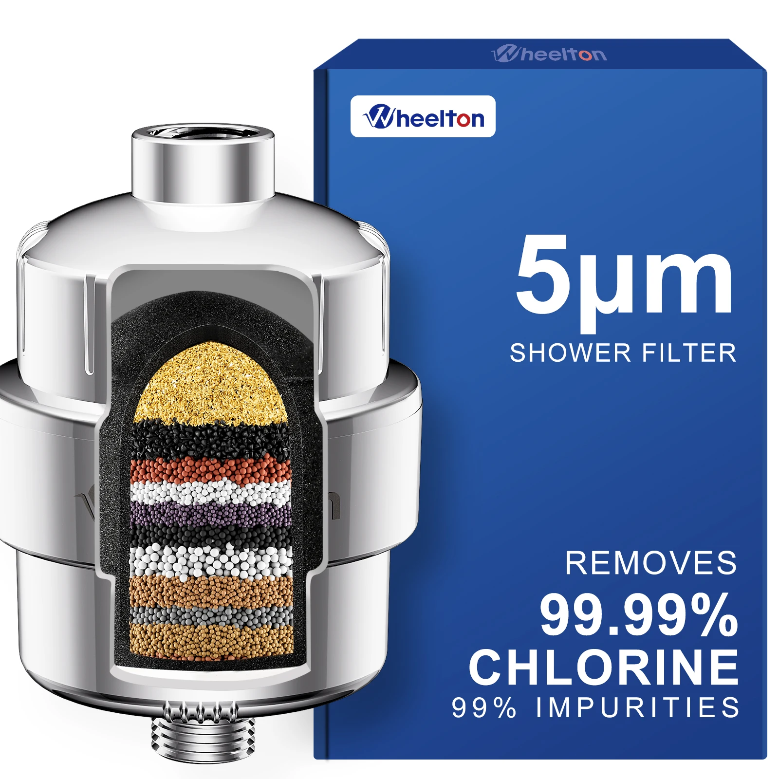 Wheelton Household Shower Water Filter - Filter Water Reduces Chlorine Heavy Metal Sediment Improves Dry Itchy Skin & Hairloss