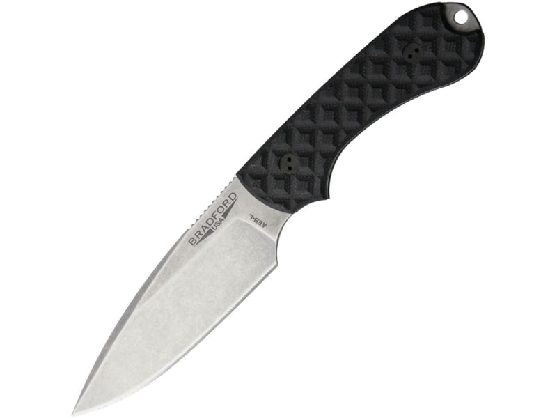 Bradford Knives Guardian 3 Black Knife 3.5" stonewash finish AEB-L stainless blade Black sculpted G10 handle 3FE-001-AEBL