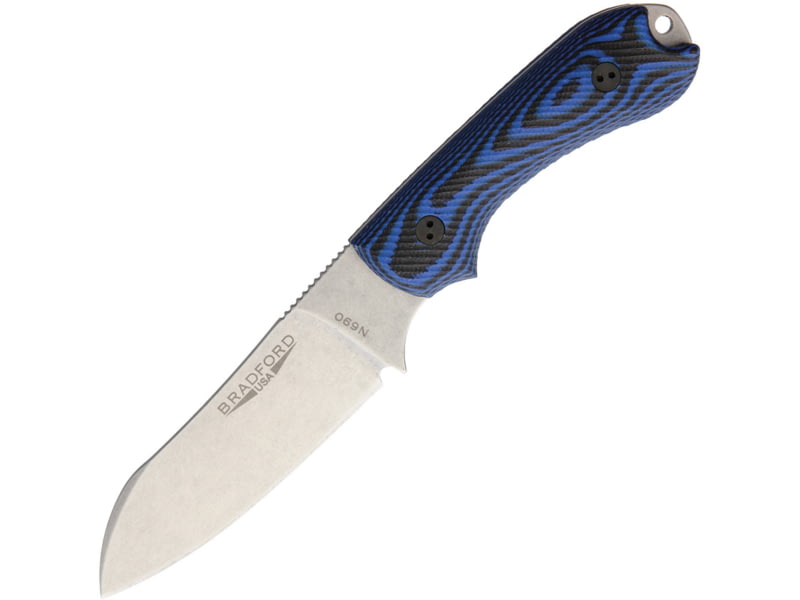 Bradford Knives Guardian 3 Sheepsfoot 3D Folding Knife 3" stonewash finish Bohler N690 stainless blade Black and blue G10 handle 3SF-113-N690