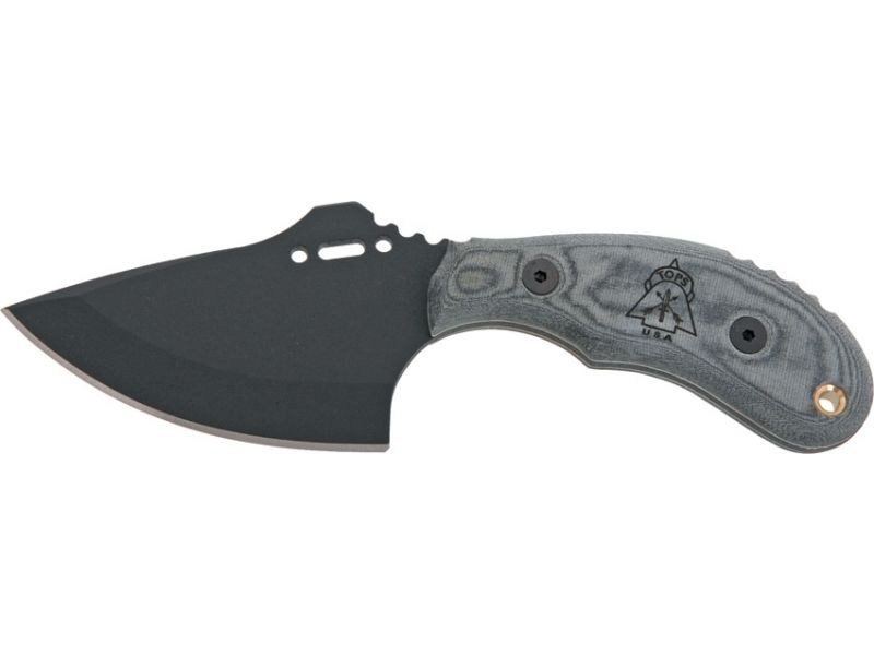 Tops Knives Wolf Pup XL Fixed Blade Knife TPWP011. This Knife from the professional knifesmiths at TOPS Knives features a 3 5/8" 1095 high carbon steel blade with black traction coating full tang construction black linen micarta handles lanyard hole...  Read more