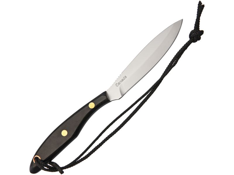 Grohmann Trout & Bird Knife Black Linen Fixed Blade Knife 4in Black Linen Micarta Handle M2S. 4" stainless blade. Full tang. Black linen micarta handles. Black cord lanyard. Brown leather belt sheath. Specifications for Grohmann Trout & Bird Knife...  Read more