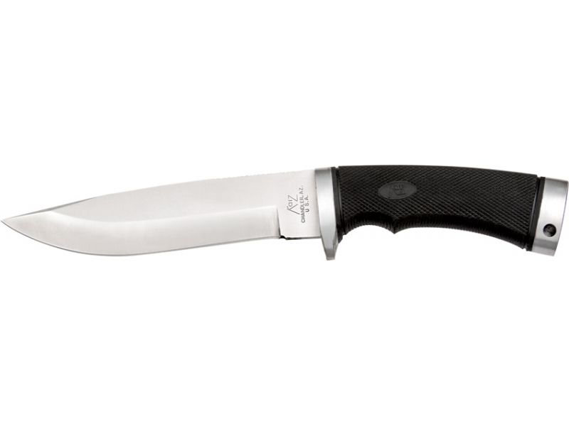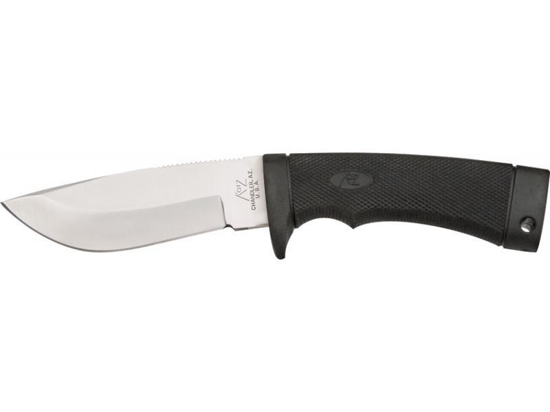 Katz Black Kat Series Knife 9 1/4in. KZBK103. This Knife from the knife enthusiasts at Katz is made with an XT-70 stainless satin finish blade and black Kraton diamond checkered handle with flared butt. Don't go hiking without the Katz Black Kat...  Read more