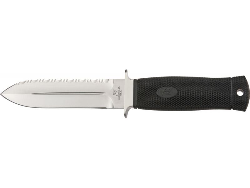 Katz Avenger Series 8.875 in. Knife KZBT10S. 875 in. Knife. This Knife from the knife experts at Katz measures 8 7/8" overall with a 4 3/8" XT-70 stainless double edge beveled blade with blood groove and black Kraton diamond checkered handle with...  Read more