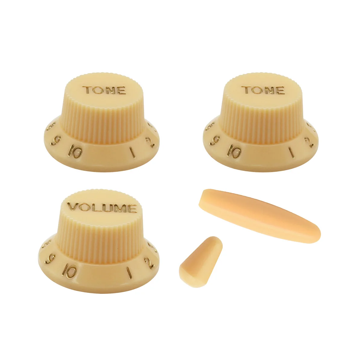 FLEOR Set of Yellow ABS Tone Volume Guitar Knobs 2T1V Whammy Bar Tip 5-Way Switch Tip for ST Electric Guitar