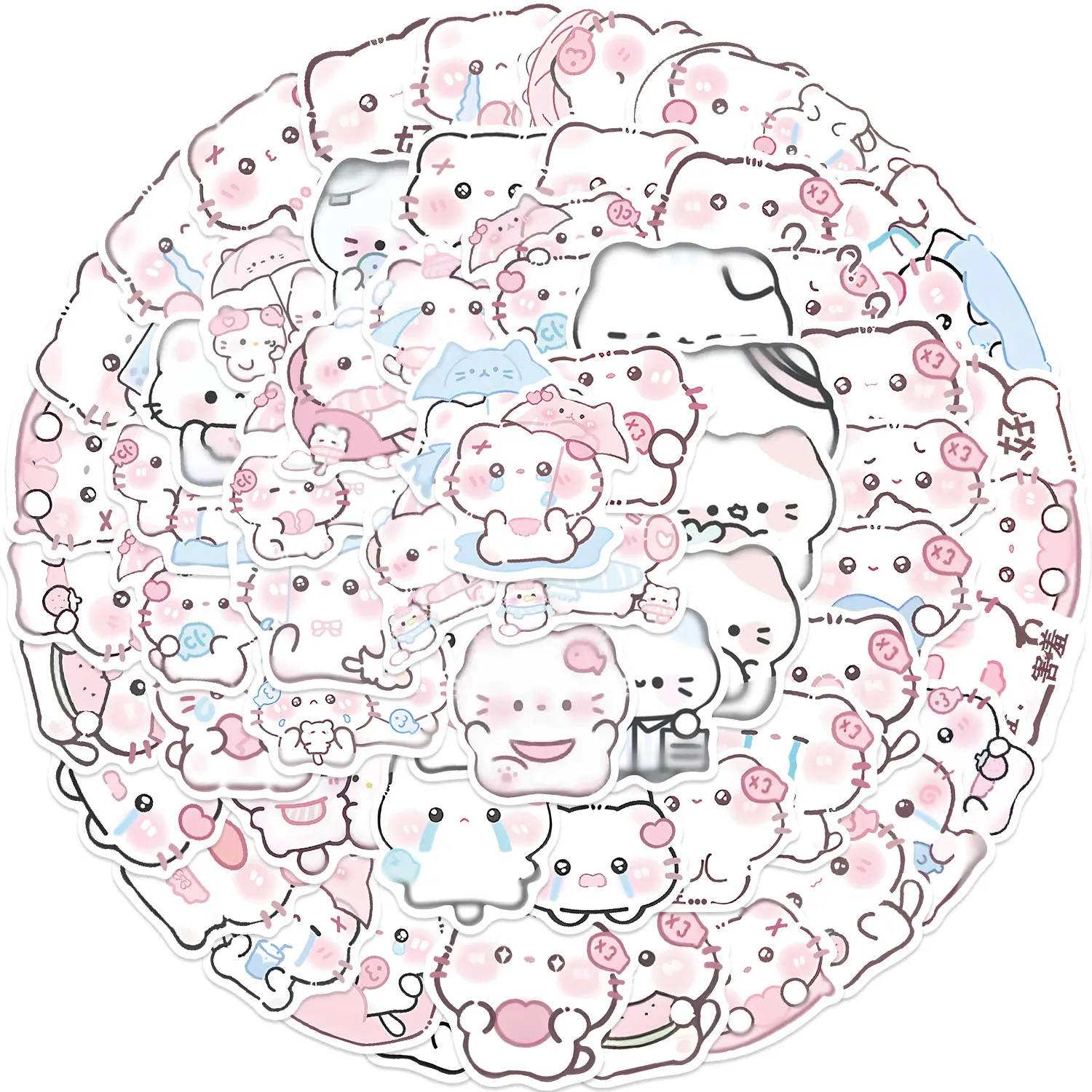 64PCS Fun Cartoon Kitten Graffiti Stickers Scrapbooking Collage Material Phone Cases Guitar Notebooks DIY Decorative
