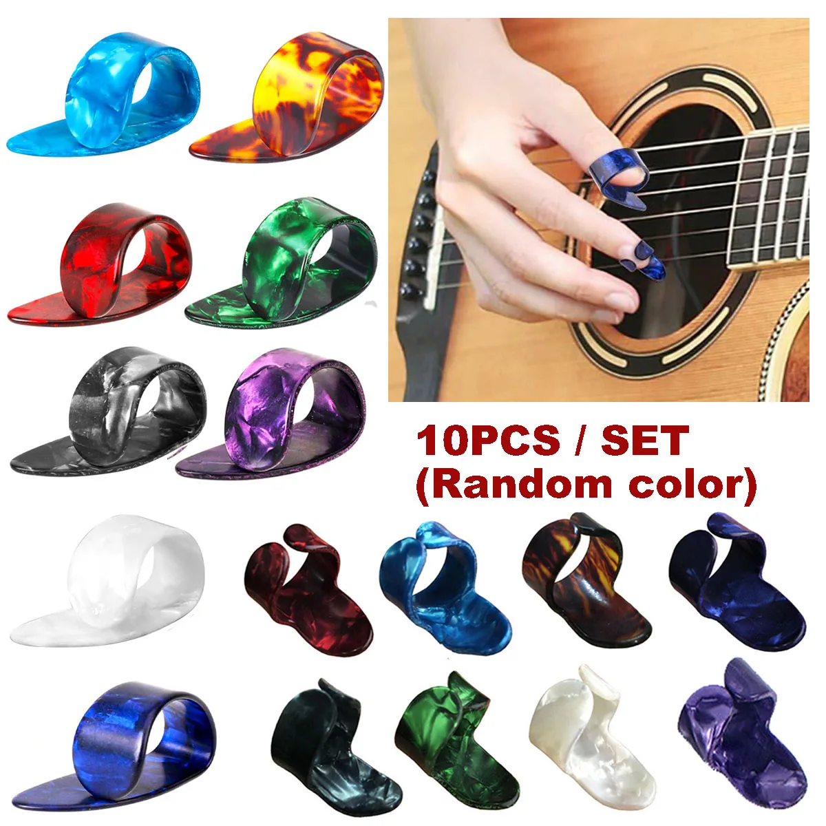 10pcs Celluloid Guitar Finger Picks Thumb/Index Sizes Fingerstyle Protector Anti-Slip Design Bass Acoustic/Electric Guitar