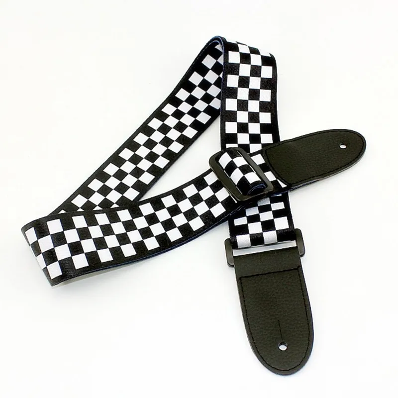 Guitar Strap Leather Black White Plaid Acoustic Guitar Strap Ukulele Bass Strap Guitar Accessories Instrument