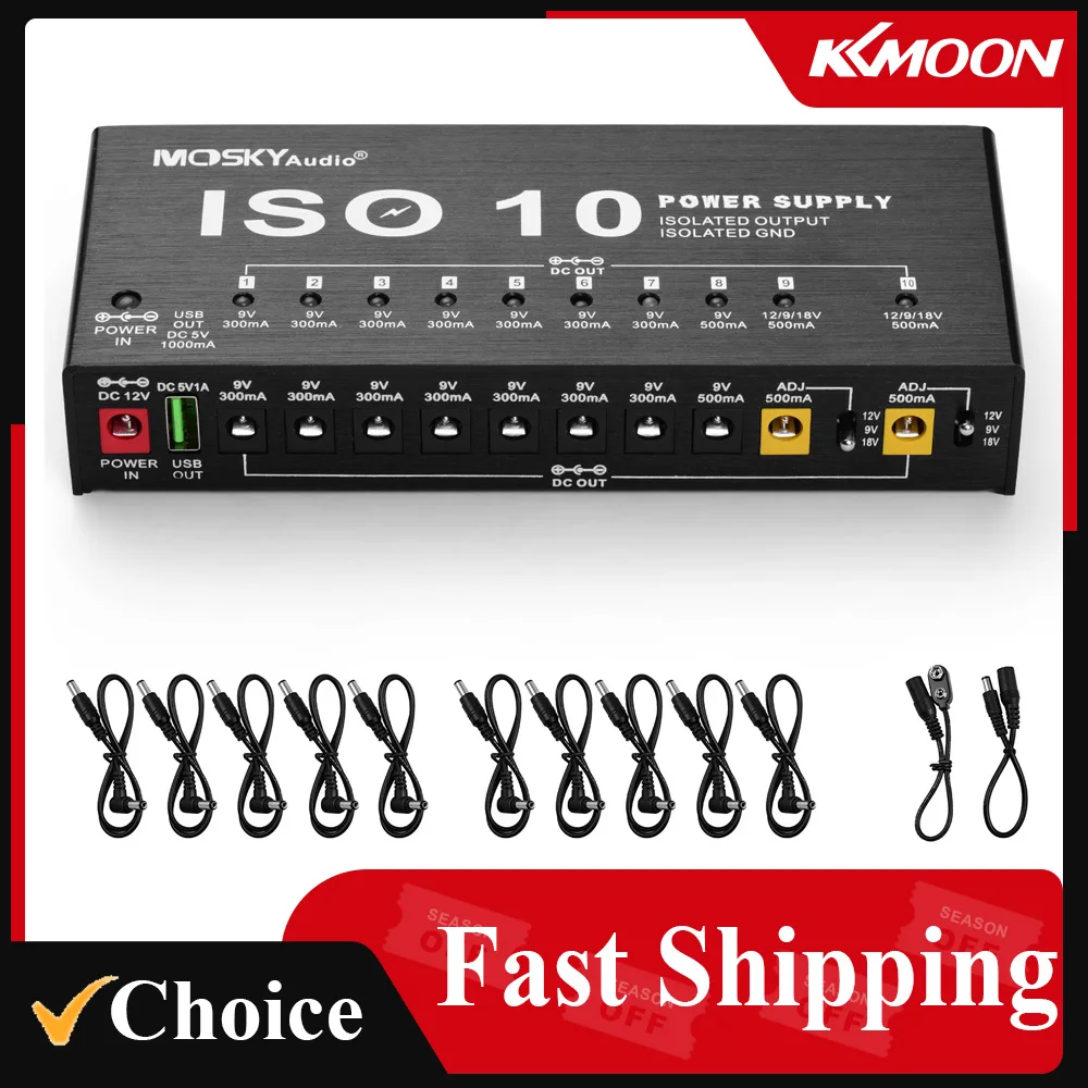 MOSKY ISO-10 Guitar Effect Pedal Power Supply 10 Isolated DC Outputs/ 5V USB Output for 9V 12V 18V Protection Guitar Accessories