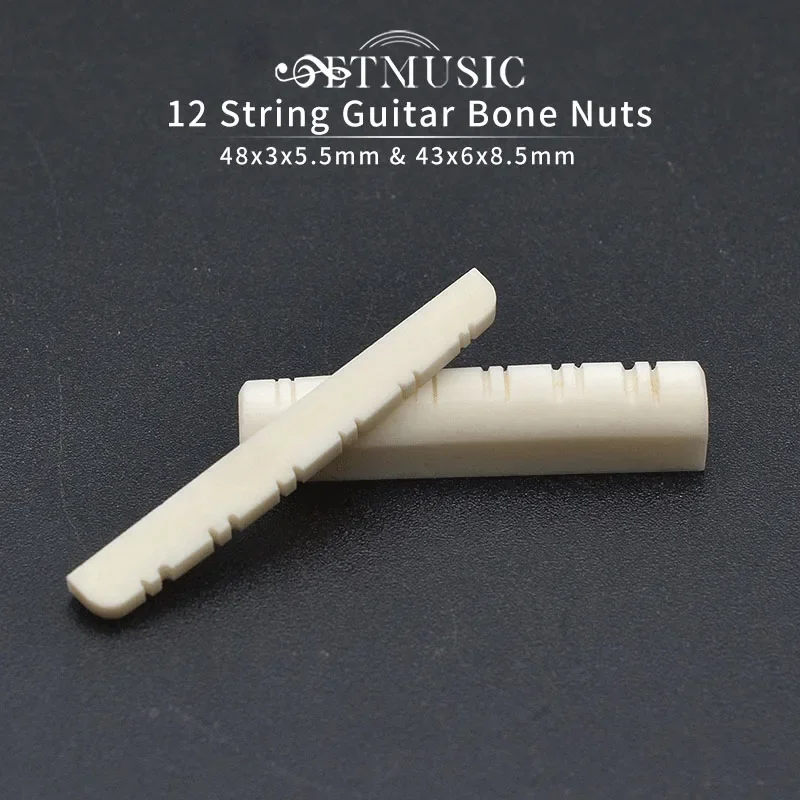2Pcs Slotted Real Bone 12-String Guitar Nuts For Electric Guitar 43x6x8.5mm or 48x3x5.5mm Electric Guitar Guitarra Accessories