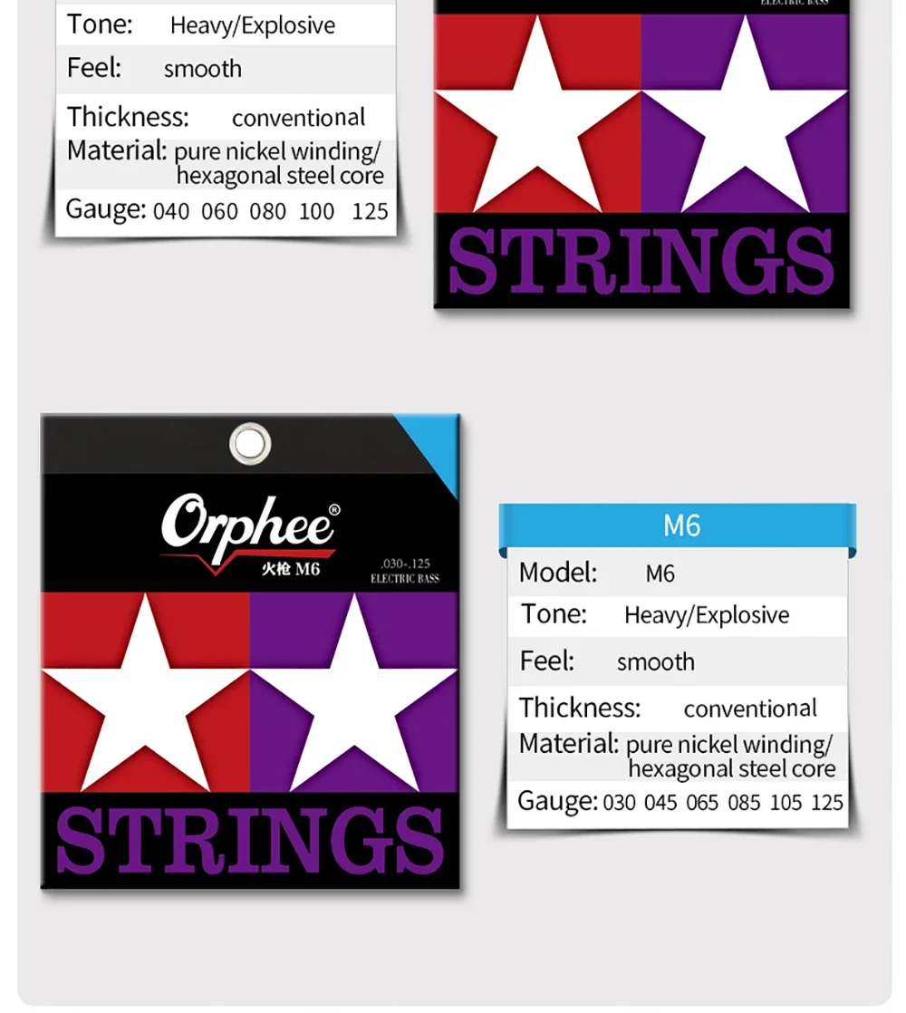 Orphee M Series Electric Bass Strings Hexagonal Core 100% Nickel for 4/5/6 String Bass Guitar Instrument Accessories