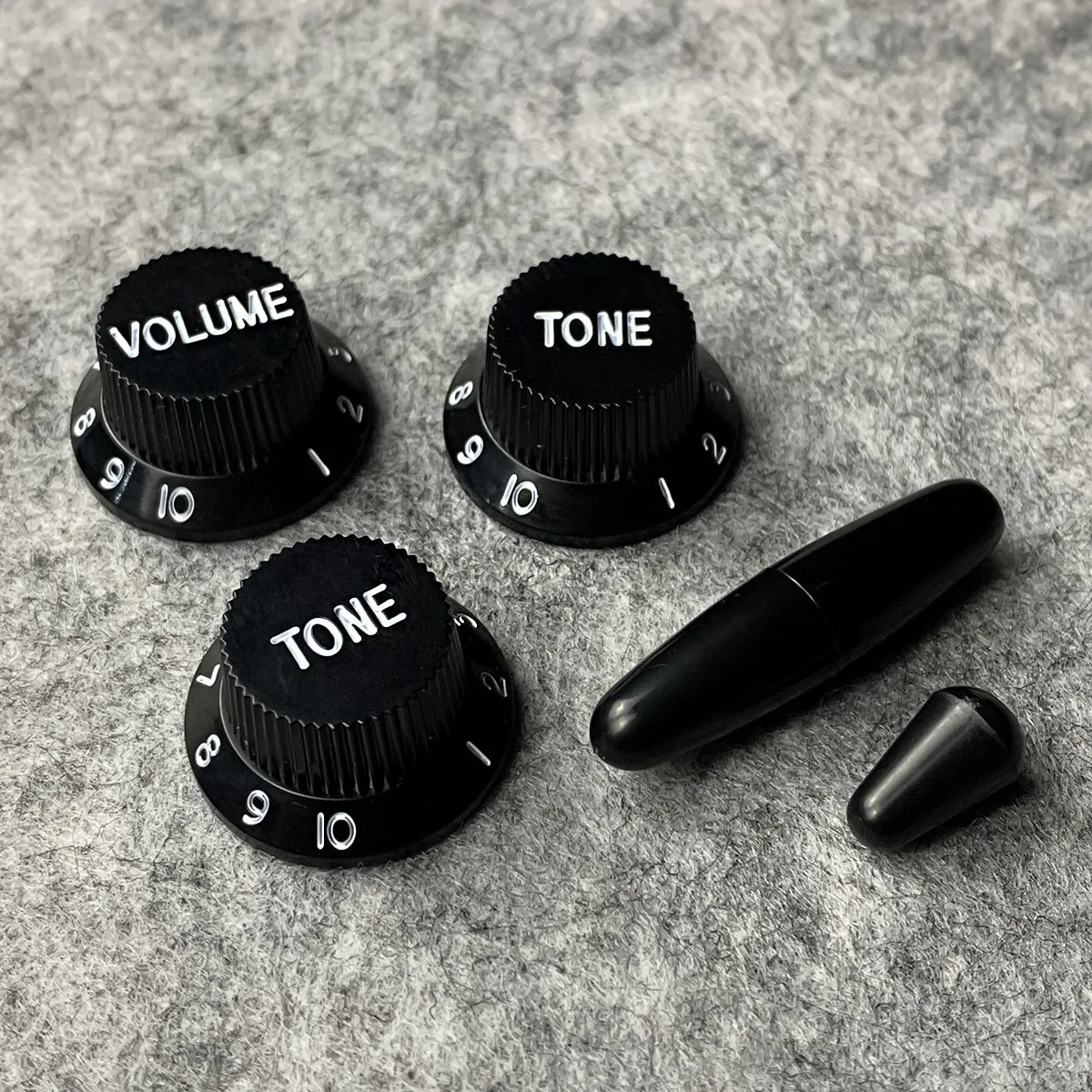 FLEOR Set of Black 2T1V Tone Volume Knob 5-Way Switch Tip Whammy Bar Tip for ST Electric Guitar