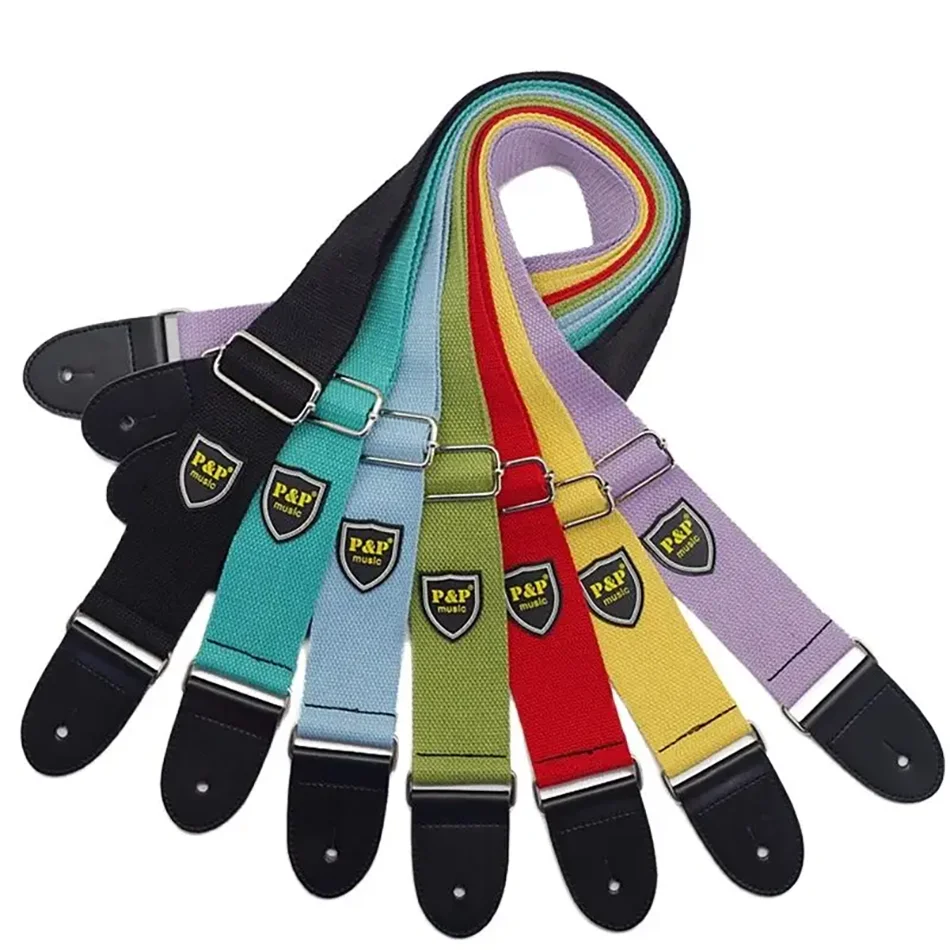 Adjustable Guitar Belt Woven Cotton Acoustic Electric Folk Guitar Bass Strap Belt with Leather Ends