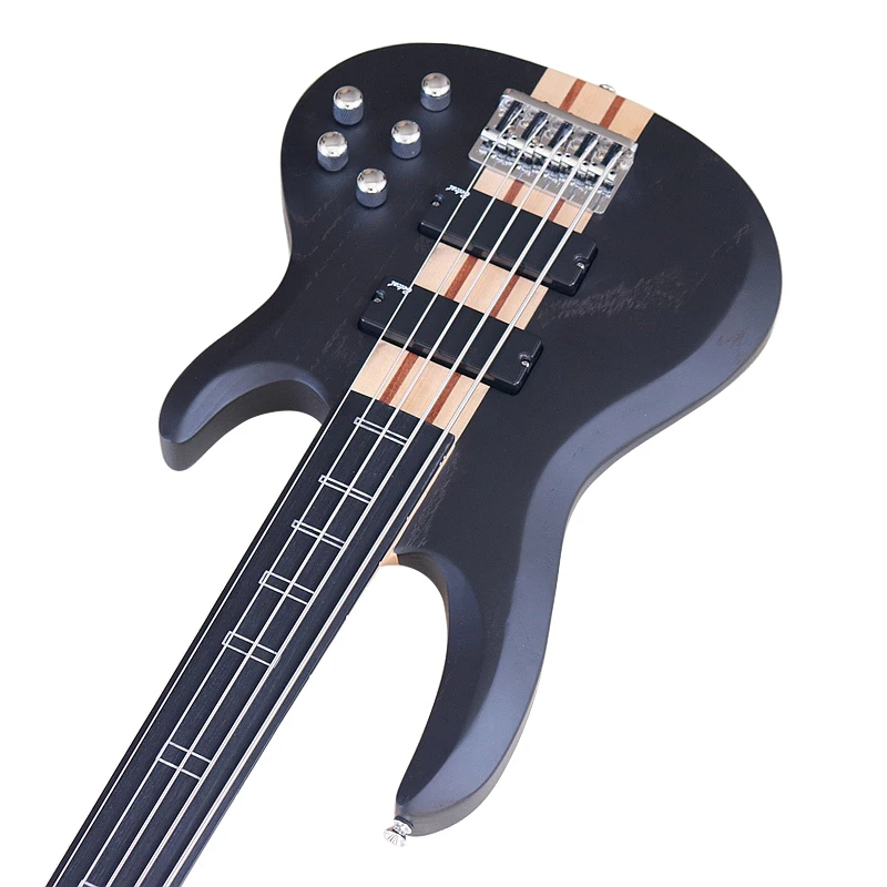 Fretless Electric Bass Guitar 5 String 43inch Solid Ashwood Body Bass Guitar Matte Finish Black Color